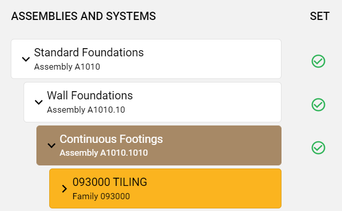 assemblies) displays a green check icon (