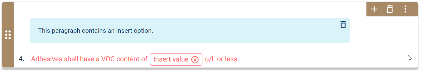 Use the contents of an option set to provide your firm's design professionals with options within in a paragraph.