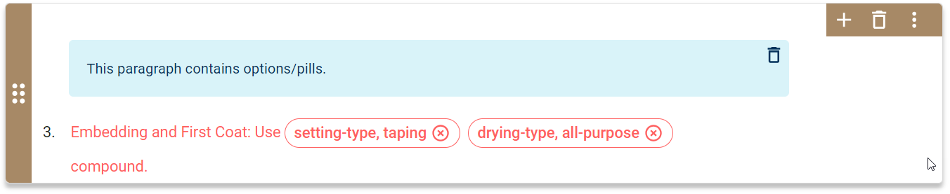 | Add Command | To add an option/pill, place your cursor in the paragraph text and click