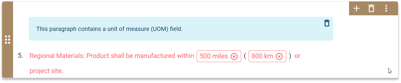 | Description | Create a unit of measure (UOM) field to enable users to enter measurement values in an element's paragraph or property. |