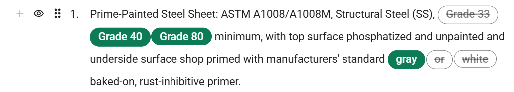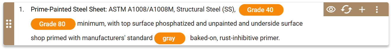 A paragraph can have a notes to specifier to guide you in including and modifying the paragraph.