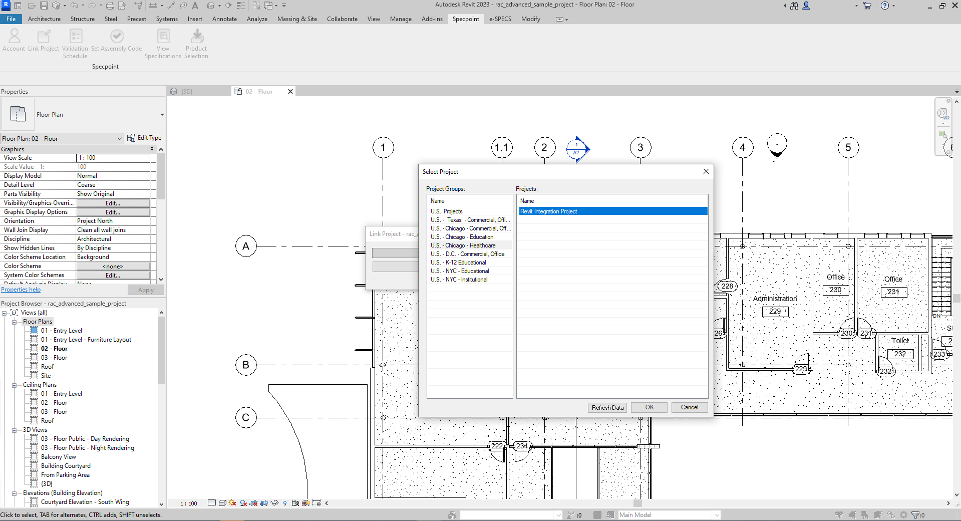 Use the contents of this dialog box to select a Specpoint project to which to link to your Revit model.
