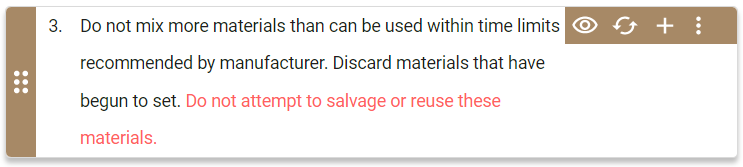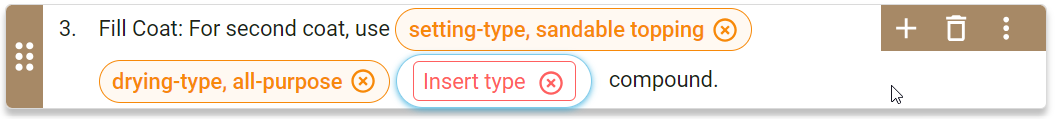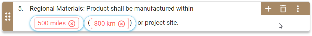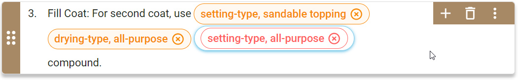 | You added an option/pill in a paragraph. | The option/pill displays with a red font, outline, and