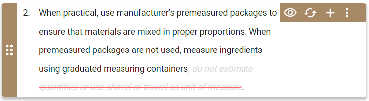 This includes the deleted paragraph's subparagraphs as Specpoint automatically deletes all subparagraphs when you delete a parent paragraph. For more information, see Removal of Element Contents. |