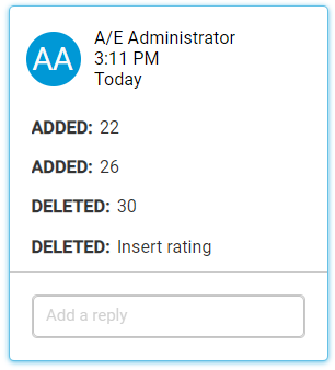 You can click an in-line track change item to select its equivalent track change tip on the Track Changes tab. Inversely, you can use the Track Changes tab to browse through all available changes within an element. On this tab, click a track tip to quickly navigate to its respective in-line change on the element form.