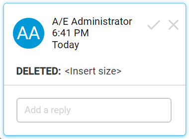 Note: For user-added text fields, this applies only to accepted text fields. Removing an unresolved added text field removes the related track change data.