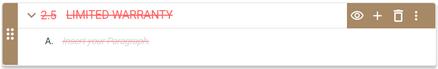 The article title displays in red font with a red strikethrough. All its paragraphs display in gray font with a red strikethrough.