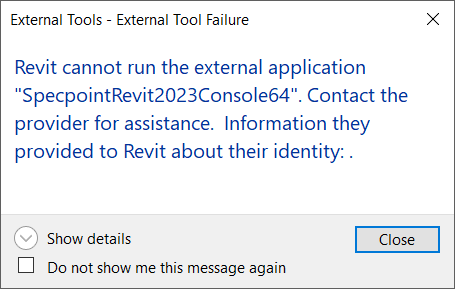 Note: Specpoint plug-in for Revit automatically installs this software during plug-in installation. You might have deleted this installation or overwritten it with an unsupported version.