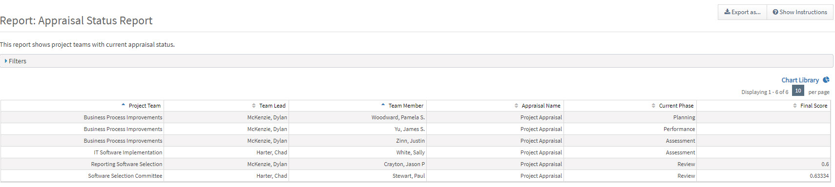 You can re-filter the report by selecting from the filter options. You can also export the report in several formats, such as .csv, .xls, and PDF.