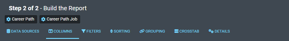 Before adding columns and fields to your report, you click Create Report, and select data sources. Refer to these previous steps for more information.