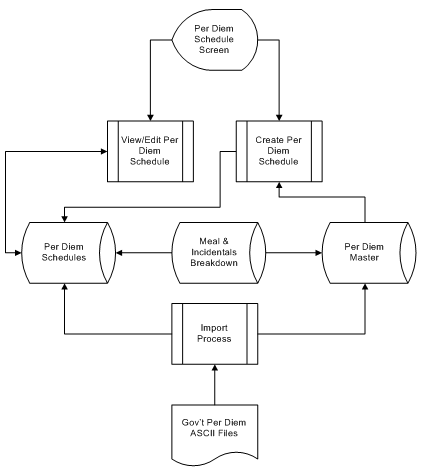 The following diagram illustrates how per diem schedules are maintained.