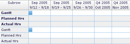 The accordion calendar grid on the Planning tabs is then structured to display the Planned Hours, Actual Hours, and Gantt information for the selected date structure.