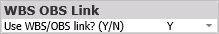 Use the WBS OBS Link option to indicate if you want to display the WBS OBS View analytics in wInsight Analytics - Multi-Project.