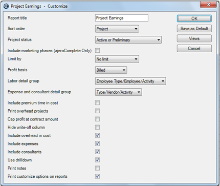 Ajera provides a set of reports designed for architectural and engineering firms. When viewing a report, it's easy to select custom options for it, navigate through it, and review information in it.