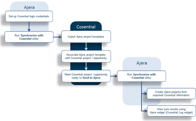 Turn Cosential opportunities into new Ajera projects The Integration imports Cosential projects and opportunities tagged with Ajera project templates into Ajera.