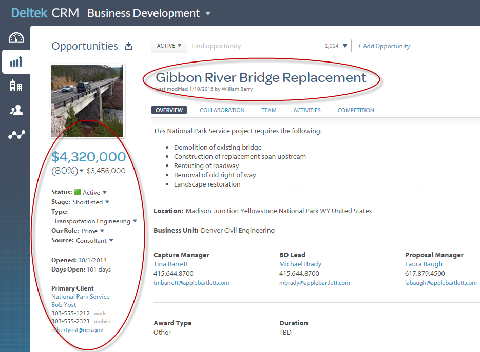 The Opportunities area of Deltek CRM provides quick access to key information for your opportunities.