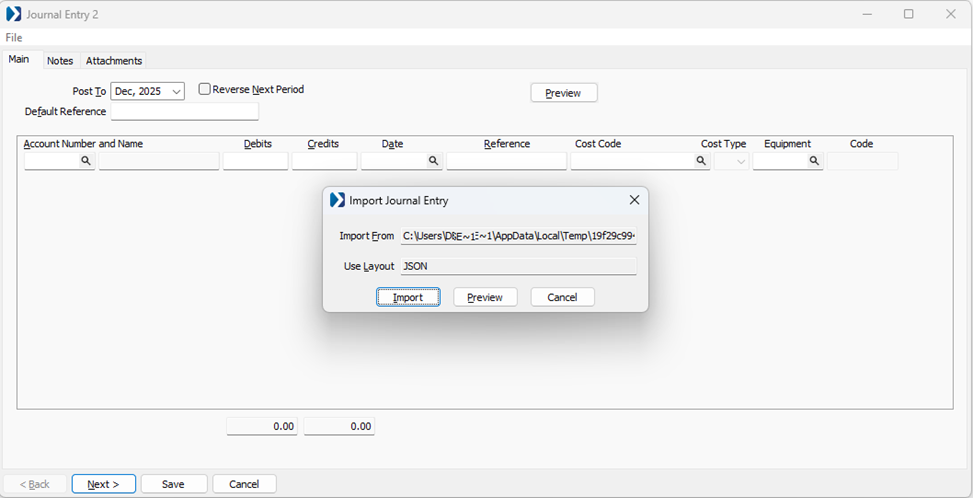 - Users can easily import the report results directly into a job costing journal entry.