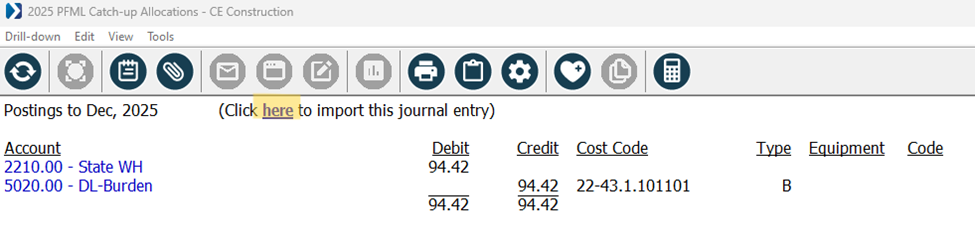 - If you have employees participating in Paid Family Medical Leave (PFML) programs for Colorado, Connecticut, Delaware, Massachusetts, Maine, New York, Oregon, or Washington, you need to run the 2025 PFML Catch-up Allocations report for each company to identify if there were any erroneous general ledger and job cost or equipment cost entries resulted after updating to version 25.3.