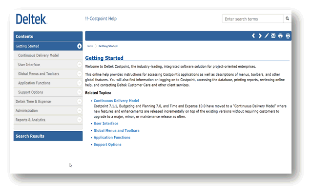We are in the process of transitioning to a new tool used to create our online help. In this transition phase, you can still display help from any page by selecting Help, Help or pressing Shift/F1. The help appears in a slightly different format, but has the same data. For the existing help, you can still click Show to see the entire table of contents. In the newer help, the table of contents always appears. The two tables of content work together to display all help. You can move to and from the tables of content to search help as needed.