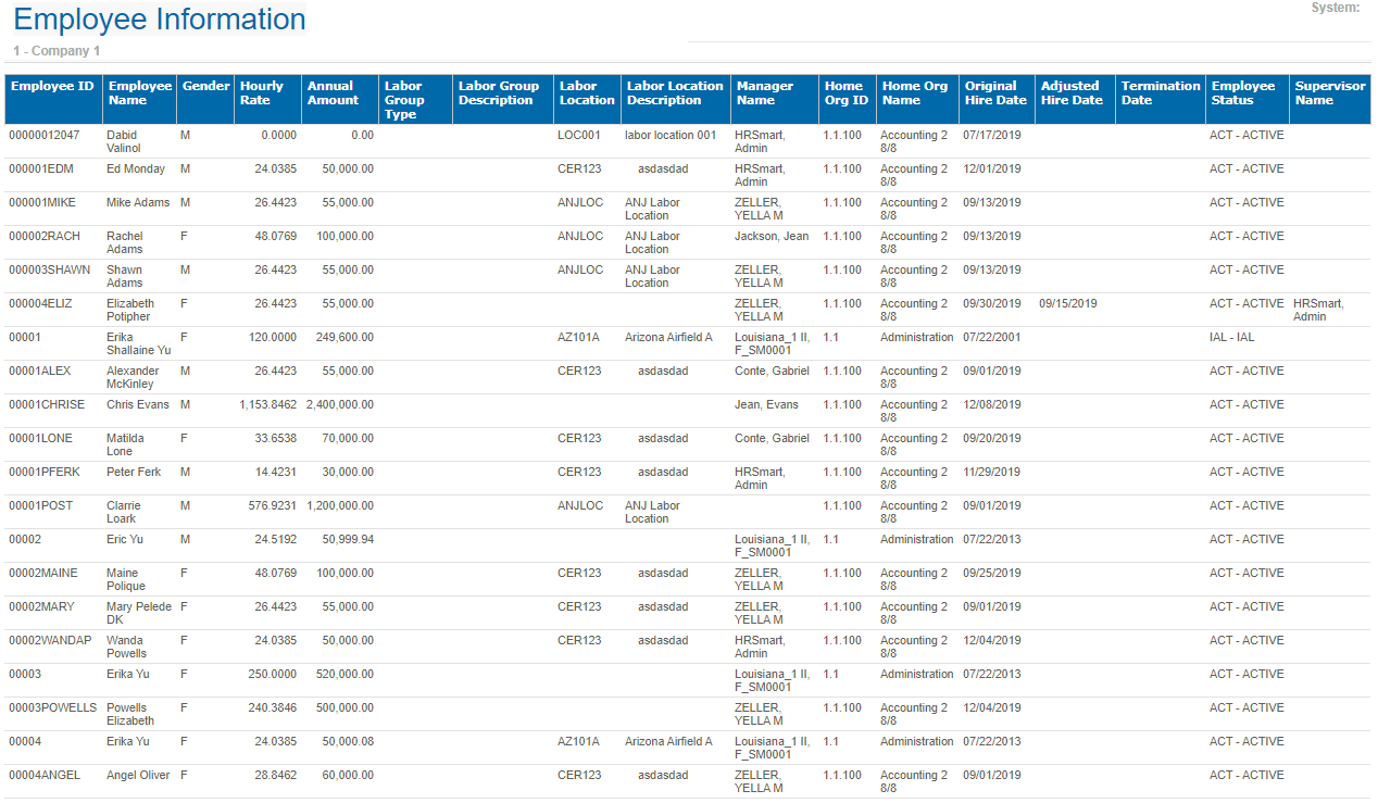 Here is a sample of the Employee Information report.