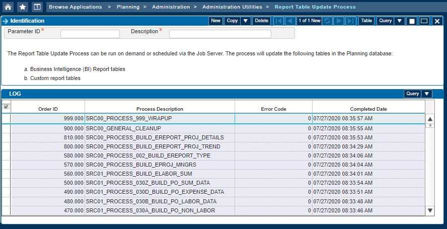 As part of the Backend integration between Costpoint and Costpoint Planning, the Refresh Process in previous Costpoint versions has been removed and is no longer required to update the tables. The runtime will be significantly shorter because all of the tables are updated through a more direct integration using Link Views.