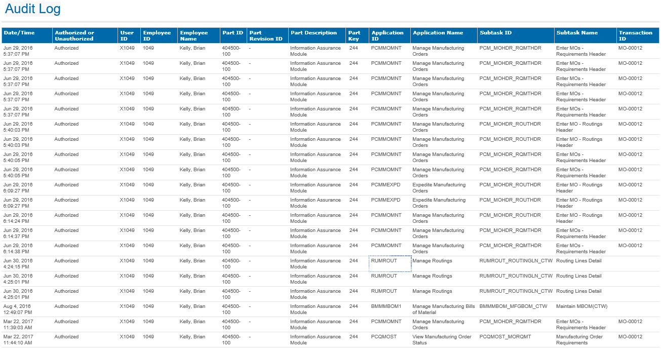 Audit Log Report