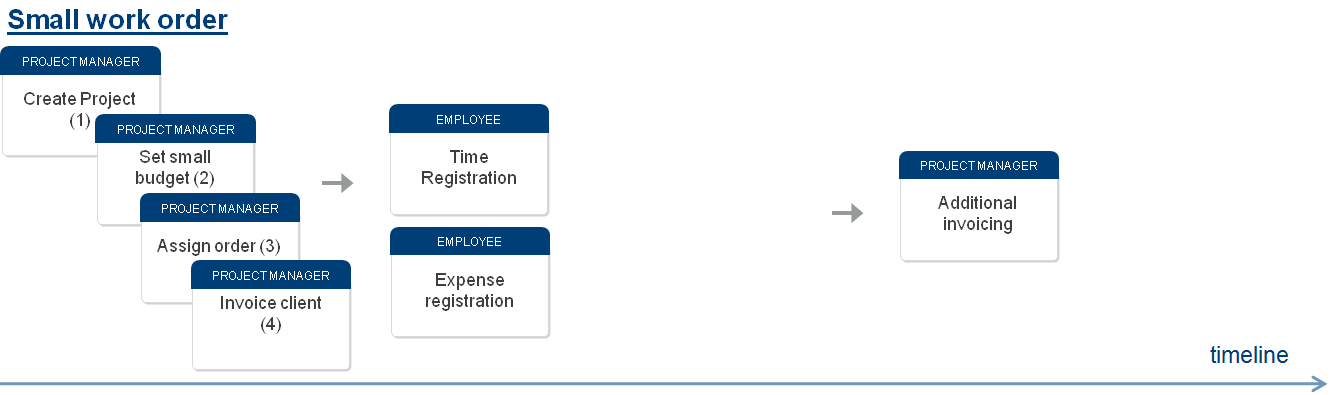 In many cases, a company also performs a lot of small day-to-day assignments, such as a daily consulting task or a small time and material job that you want to process quickly without setting up work breakdown structures, detailed budgets, and project plans.