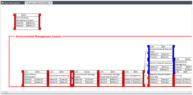 By default, network views display only one hierarchical level at a time. However, it is possible to show multiple levels of a hierarchical project simultaneously in Open Plan.