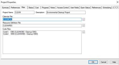 In Open Plan, you define the activity code in the Code Files grid on the Files tab of the Project Properties dialog box.