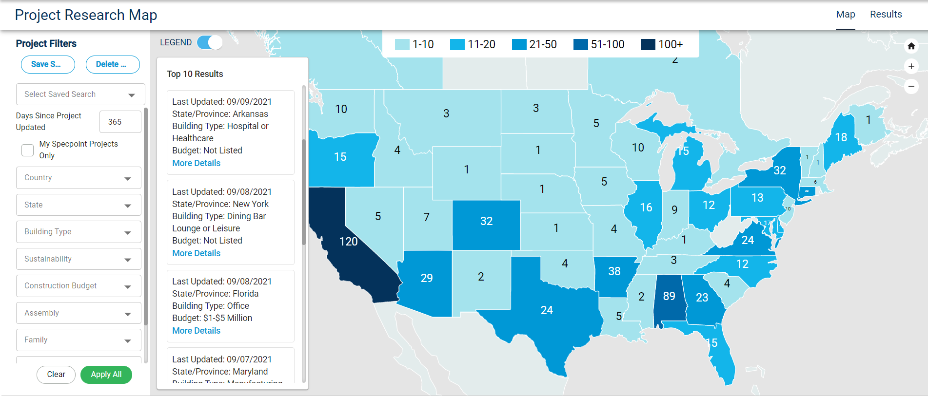 The research map contains data from projects within Deltek Specpoint and other Deltek Specification Solutions platforms such as e-SPECS.