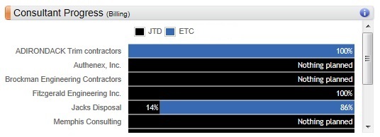 The JTD and ETC bars display what percent of the total planned amount is complete through today, and what percent of the planned amount remains for each consultant type.