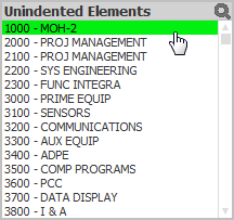 When you select a filter value in one list, filter values in other lists may also be excluded by that choice. They too are displayed with gray backgrounds. You can select an excluded filter value, but that also removes the original filter because the two selections are not compatible. Example: Your selection in the CAM filter list excludes elements for which that person is not the CAM, so those elements have gray backgrounds in the Unindented Elements list. |