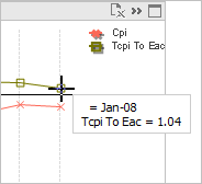 - If the chart is a line chart, position the mouse pointer over the intersection point of a plotted line with the vertical grid line for a horizontal axis value.