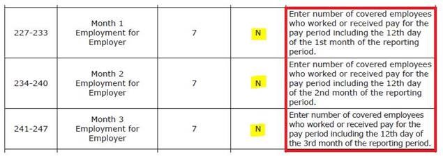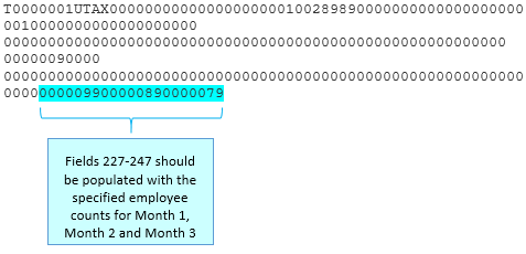 Example of what T record should look like. (In this example, Month 1 Employment = 99, Month 2 Employment = 89, and Month 3 Employment = 79.)