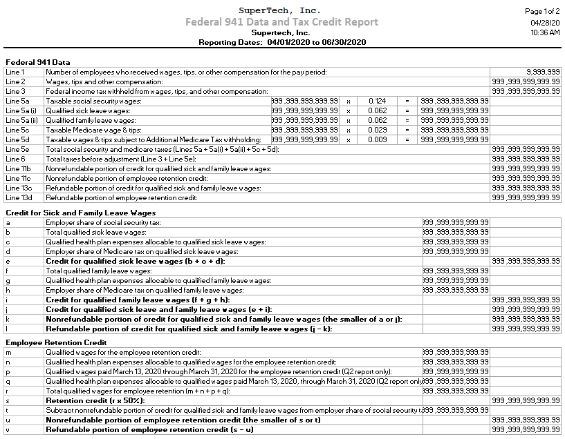The U.S. Department of Treasury has not yet announced how the recent Social Security withholding deferral (CARES Act Memorandum) will affect the federal quarterly reporting. However, to help provide critical information, the Quarterly Federal Payroll Tax Report will be updated to provide the following information: