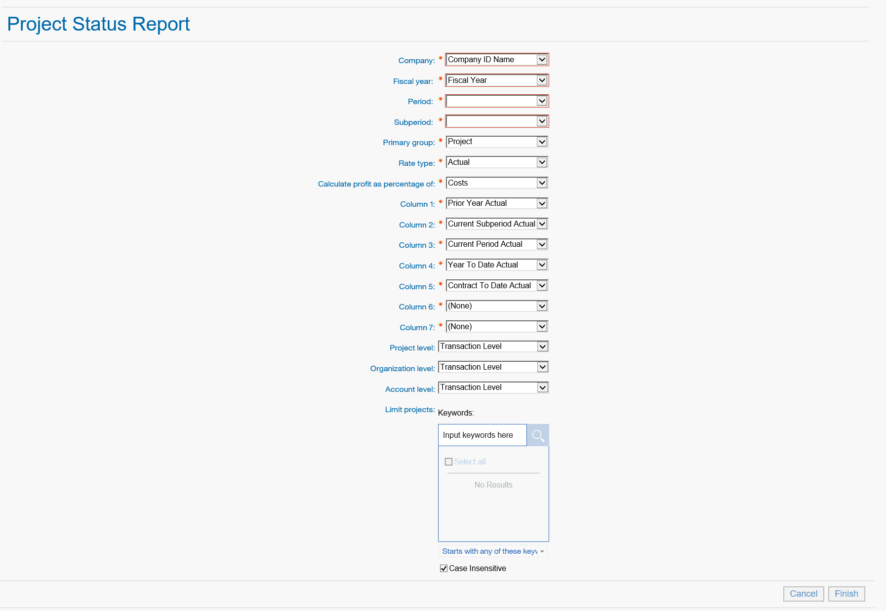 Select the project level at which you want the report printed. All lower levels will be rolled up for the report. |