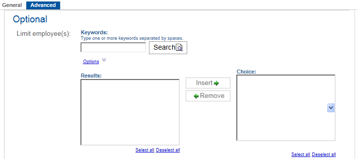 Enter a portion of one or more employees in the Keywords field to be added on the report. You can use the steps in entering keywords in the Keywords fields to return the results you are looking for. |