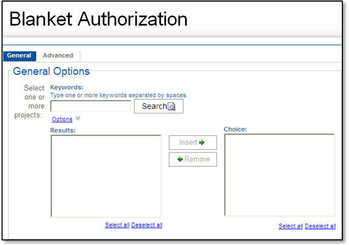 Enter a portion of one or more authorization IDs in the Keywords field and click Search to list authorizations to include on the report. You can use the steps in entering keywords in the Keywords search fields to return the results you are looking for. |