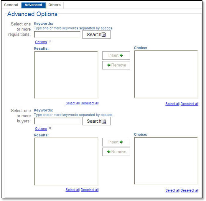 Enter a portion of one or more buyer IDs in the Keywords field and click Search to return buyers to include on the report. You can use the steps in entering keywords in the Keywords fields to return the results you are looking for. |