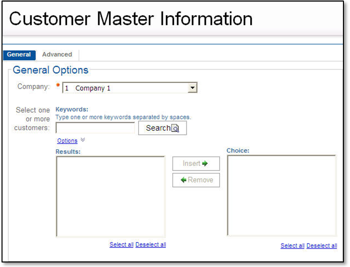 Enter a portion of one or more customer IDs in the Keywords field and click Search to list customers to include on the report. You can use the steps in entering keywords in the Keywords fields to return the results you are looking for. |