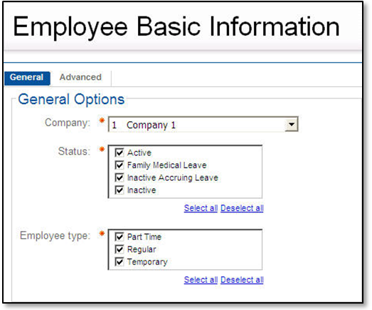 Select one or more of the following employee statuses to narrow the list of employees to include on the report: