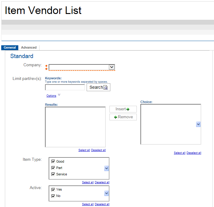 Enter a portion of one or more part/revisions in the Keywords field to be added on the report. You can use the steps in entering keywords in the Keywords fields to return the results you are looking for. |