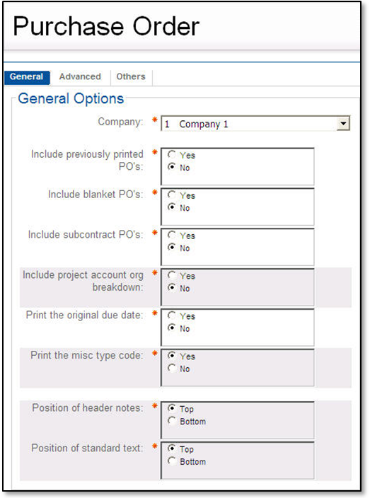 Select an option to specify whether or not POs that have been printed before will be included in the report. |