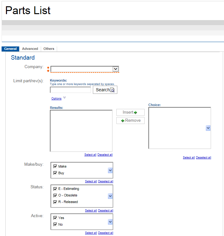 Enter a portion of one or more part/revisions in the Keywords field to be added on the report. You can use the steps in entering keywords in the Keywords fields to return the results you are looking for. |
