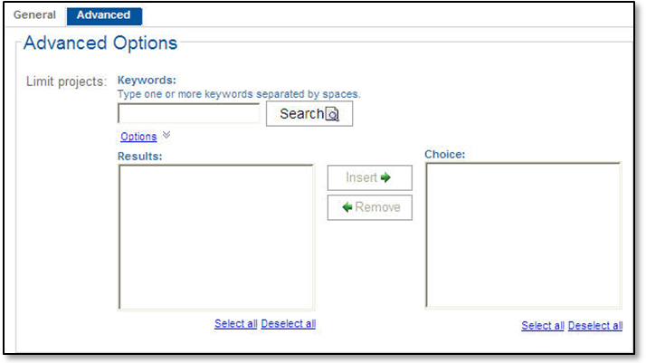 Enter a portion of one or more IDs or names in the Keywords field to narrow the primary group you selected in the previous field. You can use the steps in entering keywords in the Keywords search fields to return the results you are looking for. |