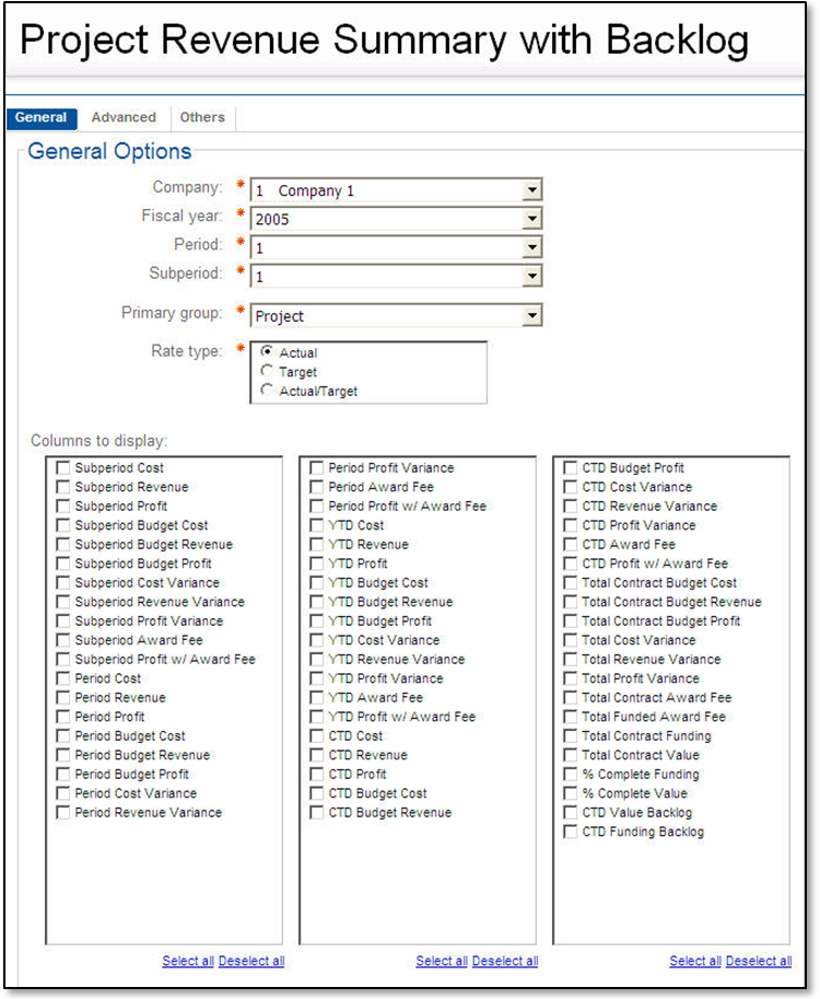 Reorganization, Alternate Project, and Project Manager are optional prompts that require some prior setup in Costpoint before you can use them.