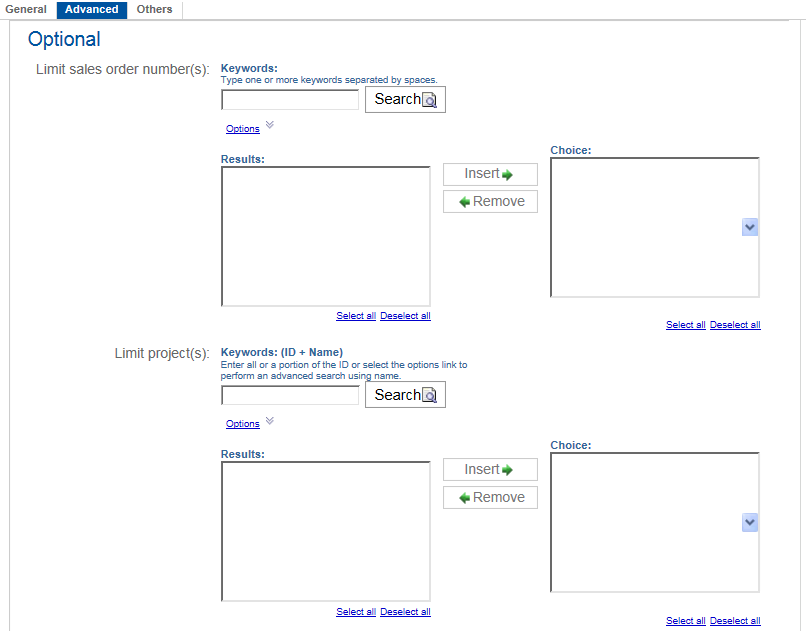 Enter a portion of one or more SO numbers in the Keywords field to be added on the report. You can use the steps in entering keywords in the Keywords fields to return the results you are looking for. |