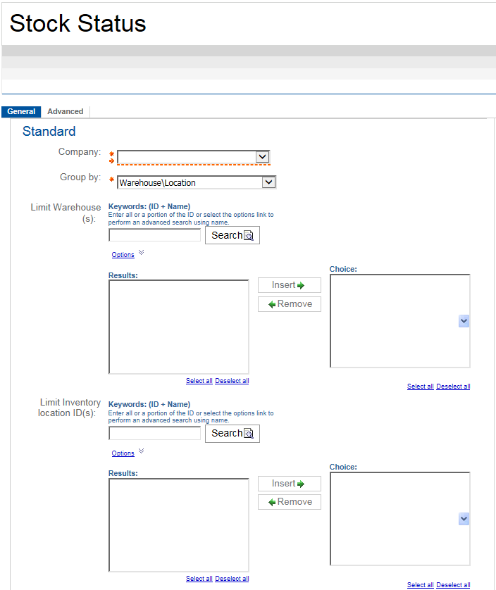 Enter a portion or the entire ID of one or more inventory locations in the Keywords: (ID + Name) field to be added on the report. You can use the steps in entering keywords in the Keywords fields to return the results you are looking for. |