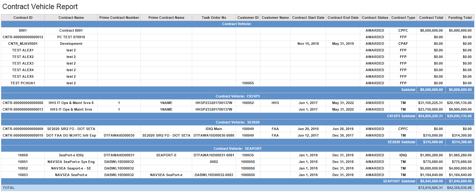 Contract Vehicle Report