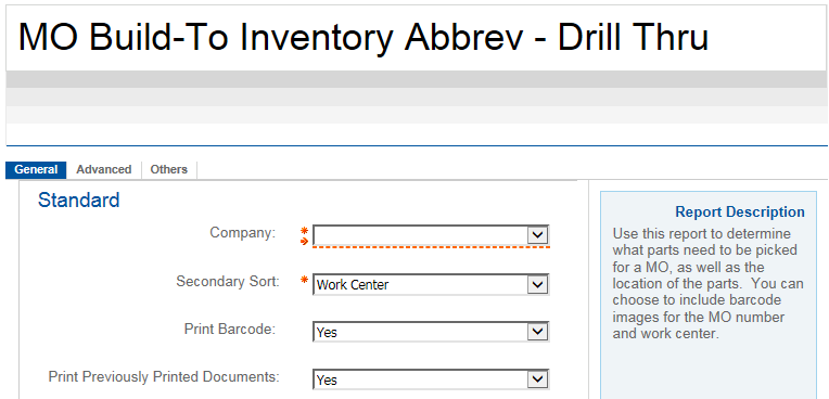 Use the MO Build-To Inv Abbrev prompts to configure the report.